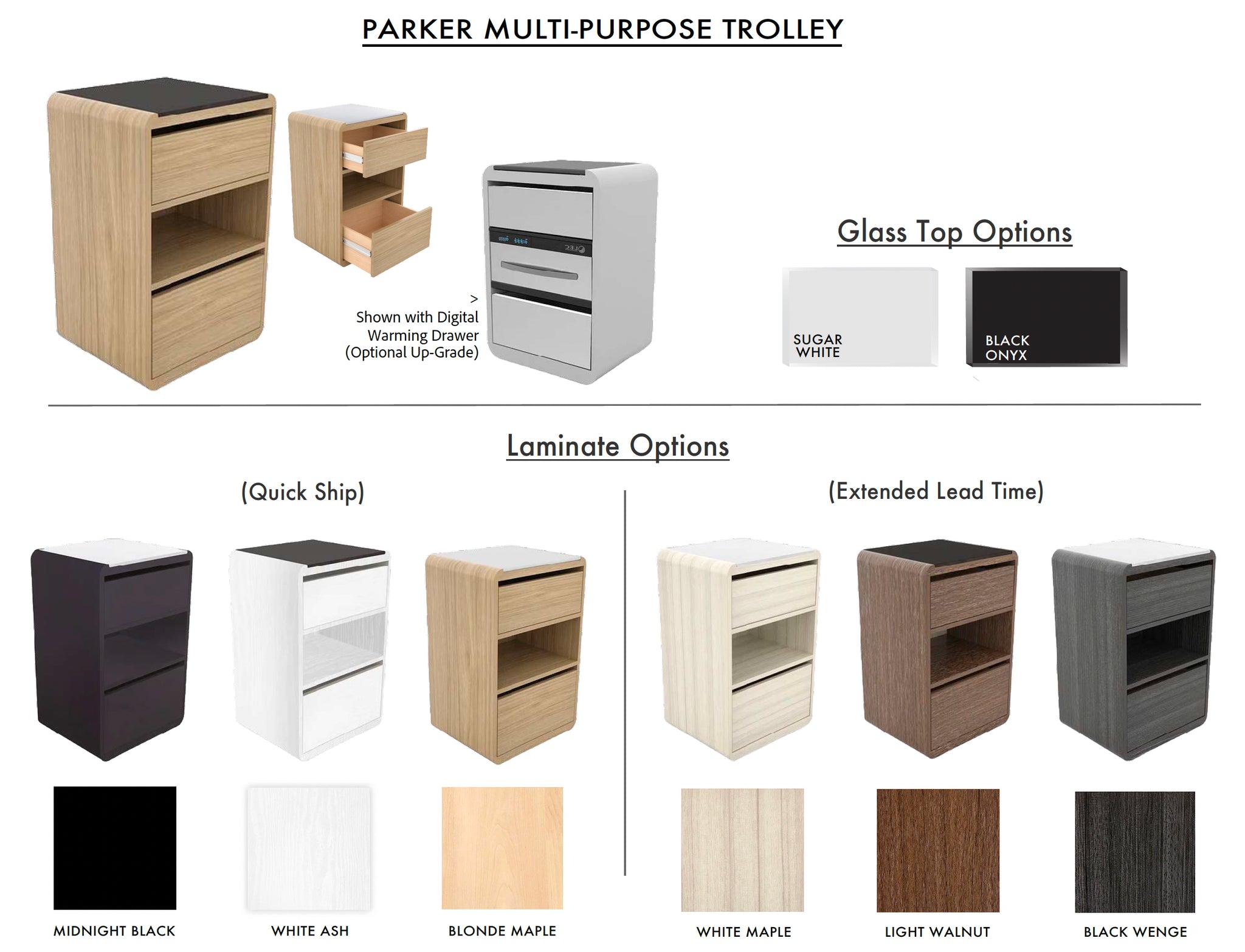An elegant trolley packed with practical features. Add an optional warming drawer for hot towels or stones and you have a fully functioning workstation.