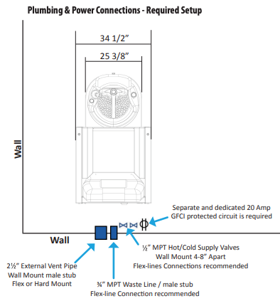 **MUST INSTALL TO WALL PLUMBING H/C & WASTE LINES