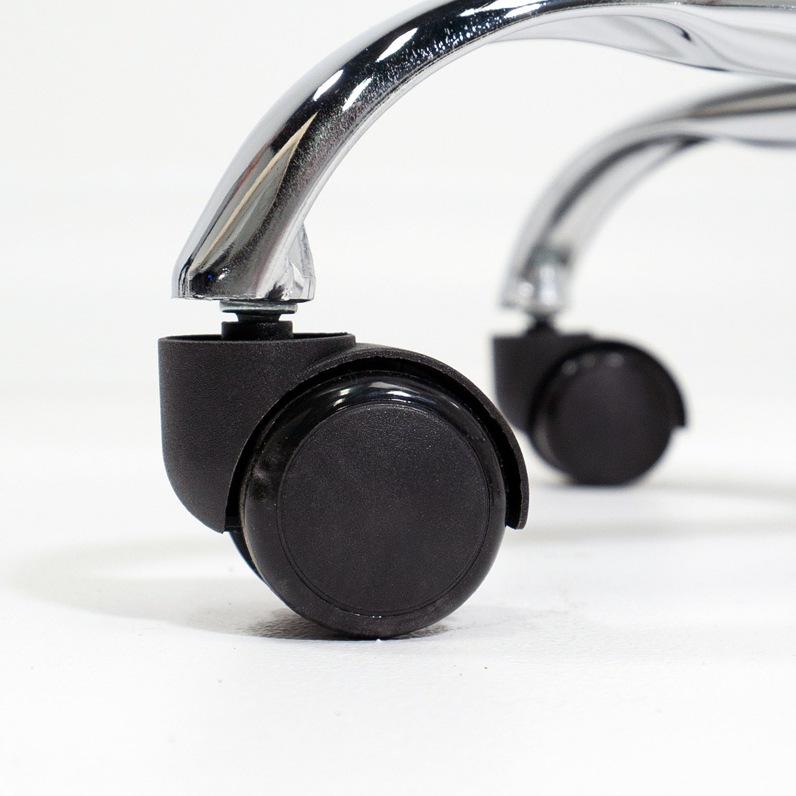 Locking wheels roll smoothly on most surfaces without causing damage.