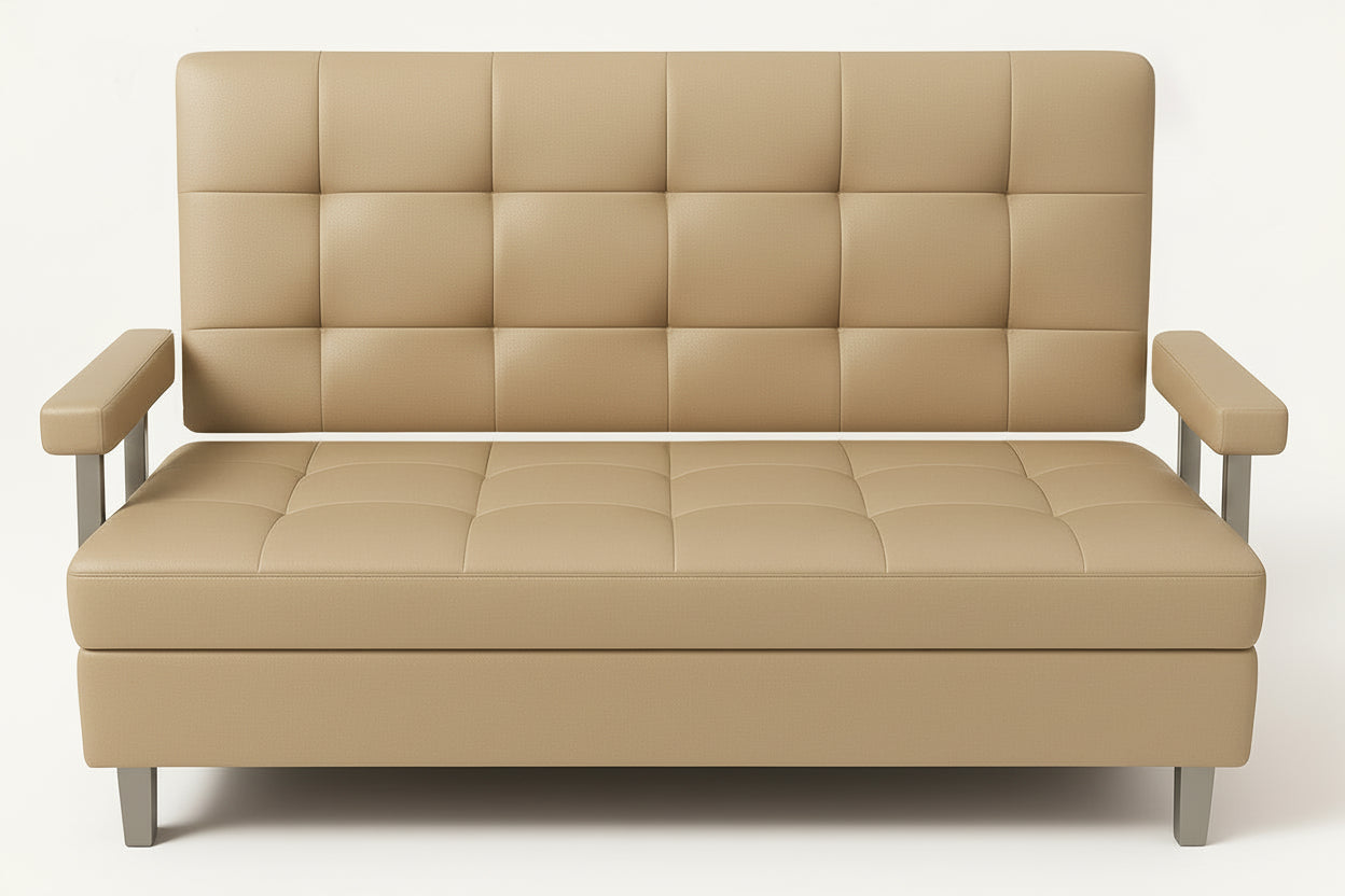 This two-person bench flaunts a beautiful stitched design and tubular-steel legs. Its clean-lined, simply elegant, rectangular profile offers eye-catching glamour, while robust upholstery offers soft yet durable look. Available with or without a wall-mounted back cushion.