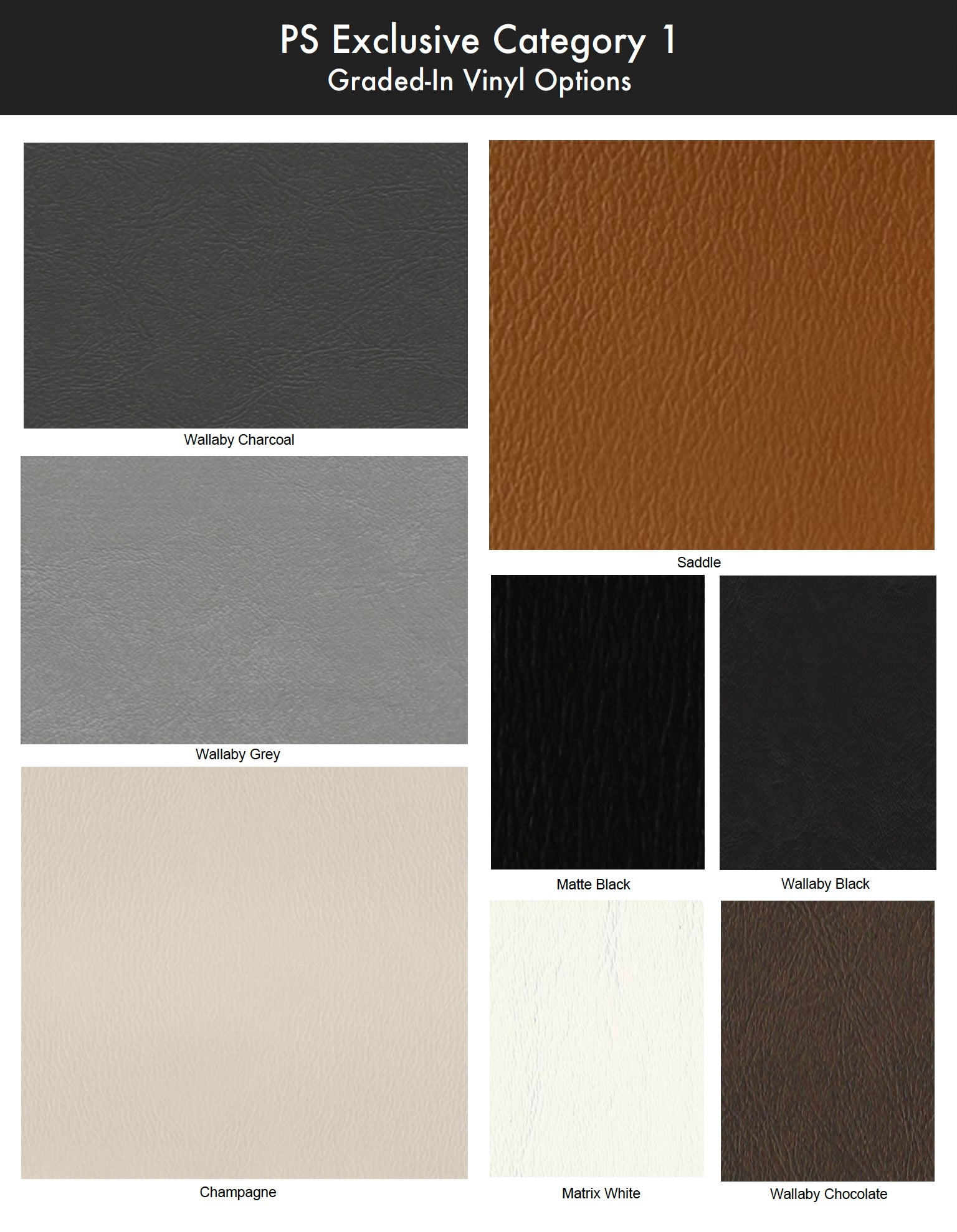 Choose from PS Essentials vinyl colors. PS Exclusive Category 1 and 2 vinyls available for 25% up-charge.